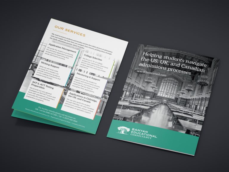 An educational consultancy, Banyan are one of the countries top University and College placement consultancies. Specialising in placing gifted students in US Ivy league and Oxbridge institutions, they needed their business identity to reflect the high level of service they provide and dedication they demand from their placement students. DW Multimedia was involved in overhauling all the company optics, providing printed and online brochures, website, stationary and all promotional products and advertising materials.