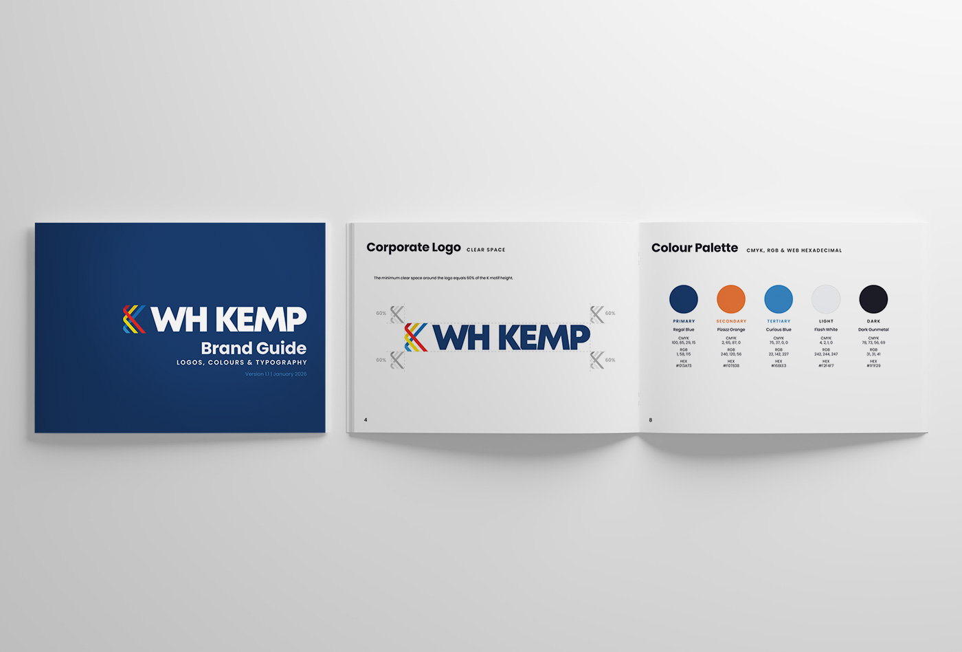 The brand was rolled out across a full set of corporate touch points including business cards, email signatures, letterhead, and social media assets, and was accompanied by a full brand guide documenting correct logo usage, colour specifications, typography hierarchy, and application examples to ensure consistency across all future use. The project also extended into physical environments with bespoke artwork produced for an exhibition stand, giving WH Kemp a confident and cohesive presence both online and at industry events.